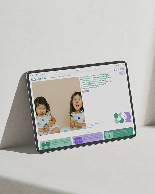 Estuve a cargo de desarrollar su sistema de identidad y la arquitectura, diseño y desarrollo del sitio web, con el objetivo de posicionar la red y ampliar su alcance. El desafío fue traducir su propósito clínico-educativo en una identidad visual profesional que visibiliza la apraxia del habla infantil, y construir una plataforma digital que funcionara simultáneamente como directorio de especialistas y centro de recursos para familias, educadores y profesionales de la salud.