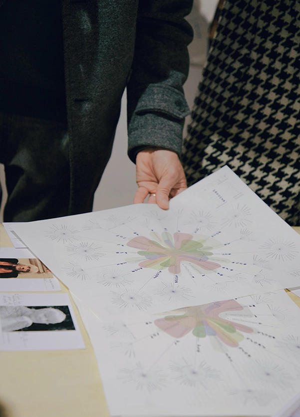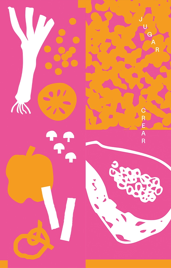 Mediante la exploración de coordenadas y la resolución de acertijos, los visitantes recorrían una mesa que evocaba la geografía del archipiélago de Chiloé, timbrando papa por papa hasta obtener un póster final que celebraba la riqueza de este tubérculo. Para esta instalación desarrollé un póster que funcionó como dispositivo pedagógico y soporte visual: una pieza diseñada para guiar el recorrido de la actividad mientras progresivamente se construye la narrativa del estampado. El sistema gráfico destacó la diversidad mediante mezclas cromáticas en risografía, incorporando textura de grano y desregistro análogo como elementos que reforzaban el carácter experimental y manual de la experiencia.