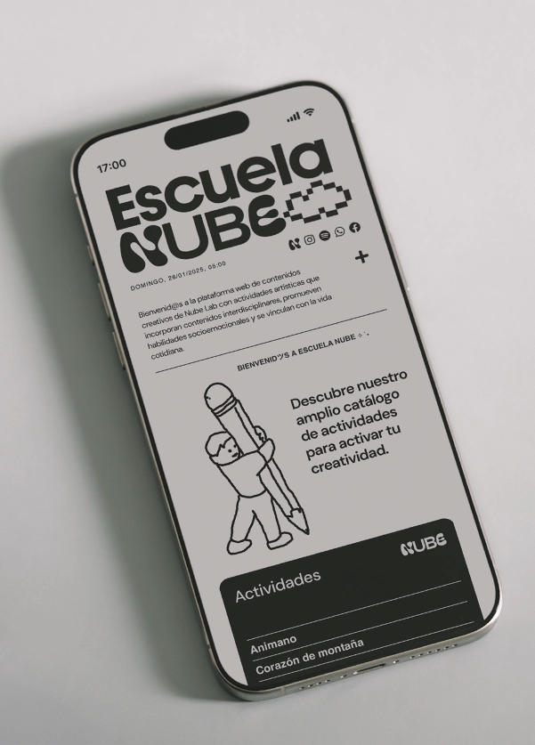 En 2020, Nube Lab —laboratorio de procesos creativos para el aprendizaje en Chile— enfrentó la interrupción de sus programas presenciales debido a la pandemia. Para dar continuidad a su misión se desarrolló Escuela Nube, una plataforma educativa online que ofrece un catálogo de actividades que combinan arte y aprendizaje desde un enfoque interdisciplinario, manteniendo el acceso a experiencias creativas para docentes, estudiantes y comunidades.