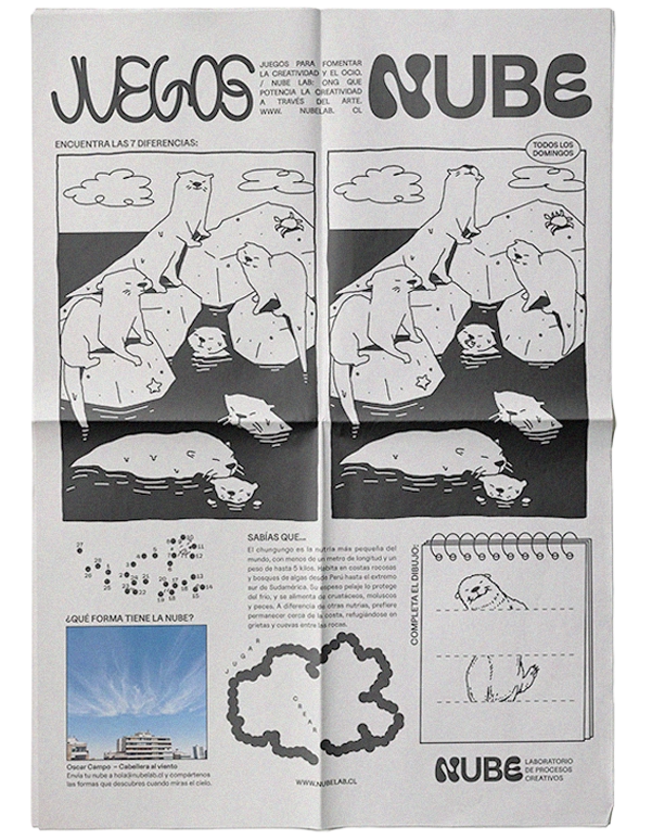 Colaboré junto a Consuelo Pedraza en definir la línea editorial, liderando el diseño editorial de la página, definiendo la arquitectura visual de cada entrega. Desarrollé un sistema gráfico modular que articulaba las ilustraciones de Aníbal Bley y Javier Otero con distintos formatos de juego —diferencias, “¿dónde está la nube?”, mensajes secretos, completa el dibujo— manteniendo identidad, legibilidad y atractivo visual a lo largo de las entregas semanales.
